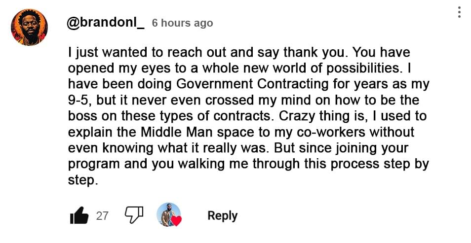 That’s my story too. Your past doesn’t disqualify you. The government ain’t worried about your college history or credit score, they care if you can deliver. I’ll show you how to partner with the right people and win regardless.