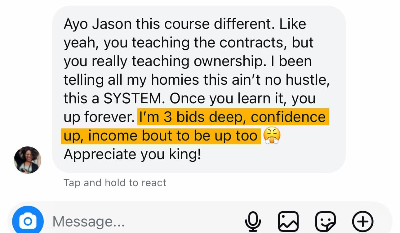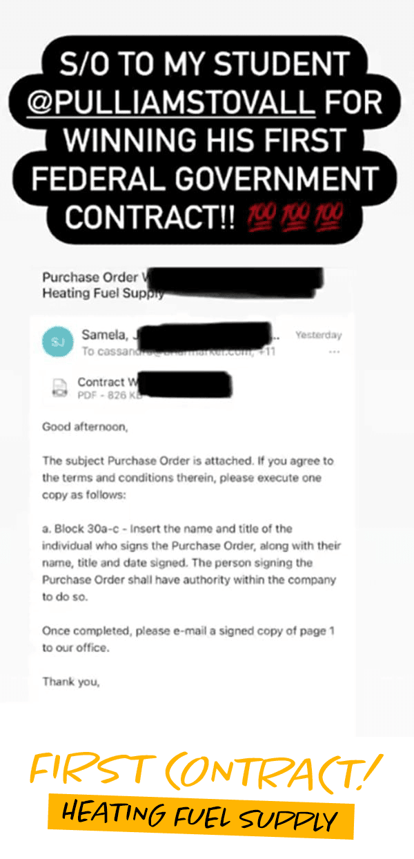 Some students win contracts in 30-60 days. Others take a little longer. The key is consistency. I’m handing you the blueprint I wish I had - no BS, just the real steps to move fast if you follow the game plan.